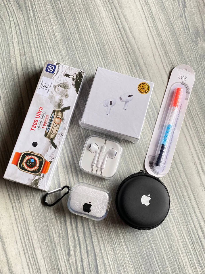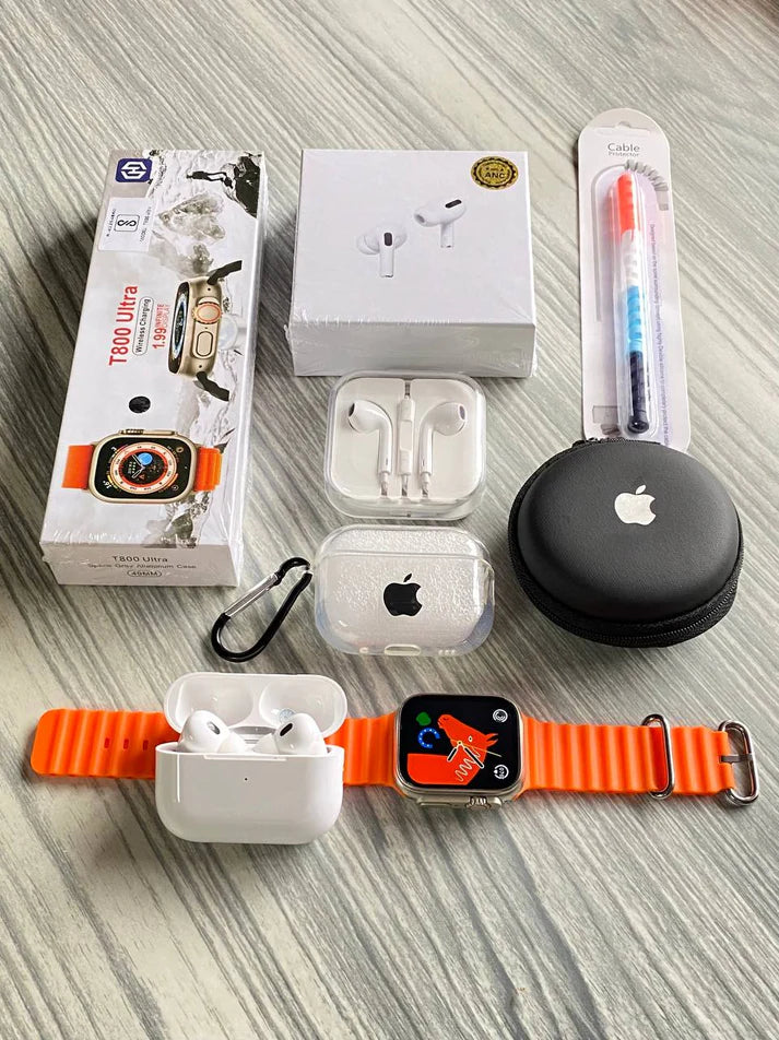 Trending 6-in-1 Combo (Smart Watch,Earbuds,Earphone,Earbuds cover,Earphone cover,Cable protector)
